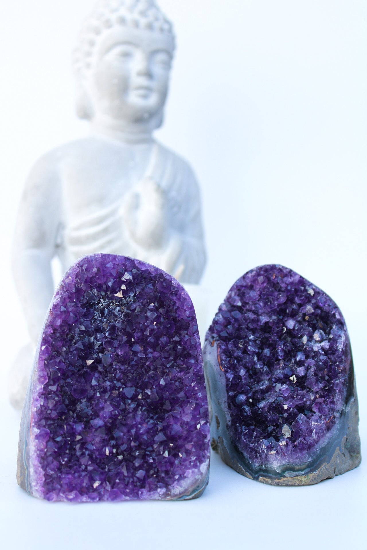 Stone of peace and tranquility positively affects its holder and environment. It enhances meditation and relaxes the mind, body & spirit. Amethyst cleanses the aura and guards against psychic attacks. It’s connected to the Crown & Third-Eye chakras, awakening inner spirituality and helping one to reach their higher self. Amethyst also aided harmful behaviors by targeting negative emotions and beliefs. Carry Amethyst with you daily for a dose of calmness. Amethyst is also placed in homes to rid negative energies, creating a positive atmosphere.
